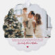Modern Red Script 2 Family Photo Christmas Tree Decoration Card