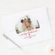 Modern Red Script Family Photo Merry Christmas Classic Round Sticker