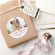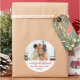 Modern Red Script Family Photo Merry Christmas Classic Round Sticker