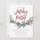 Modern Red Script Greenery Holiday Party Holiday party invitation featuring bold script and watercolor greenery with leaves and berries. Makes a great personal or business invitation.