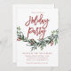 Modern Red Script Greenery Holiday Party Invitation