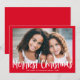 Modern Red Script Merriest Christmas Photo Holiday Card