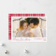 Capture the spirit of the season with our modern Christmas photo card, featuring a simple yet elegant design. Your horizontal photo is beautifully framed in white, with "Merry Christmas" showcased in a charming handwritten red script. Personalise it with your name and the year for a personal touch. The back of the card adds a cosy, timeless feel with a red and white plaid pattern. Perfect for sharing holiday joy in a minimalist, stylish way.