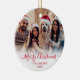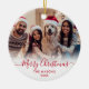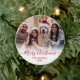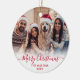 Modern Red Script White2 Photo Merry Christmas Ceramic Tree Decoration