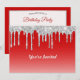 Modern Red Silver Glitter Drips Birthday Invitation