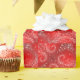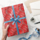 Stylish and festive red holiday wrapping paper. The design has swirling snowflakes set into a mirrored patter that makes it trendy and chic.