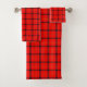 A modern style red tartan plaid bathroom towel set. A perfect rustic cabin style or home decor style.