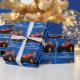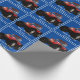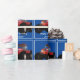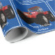 A farmer's favourite red tractor is over a blue background on this fun design.