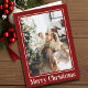 This stylish holiday card blends modern design with festive charm. The front features a bold red background with a crisp white photo border framing your cherished family photo, complemented by a "Merry Christmas" greeting below. Inside, the left panel highlights a second photo with a clean white border, while the right side provides space for a customisable message and family name. The contrast of red and white adds a contemporary yet timeless feel, making this card perfect for spreading holiday joy.