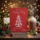 Invite your loved ones to celebrate the holiday season with this modern red Christmas party invitation featuring a minimalist white Christmas tree design with playful polka dot ornaments and falling snow. The stylish typography and clean layout make it a chic and festive choice for your winter gathering.
