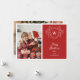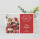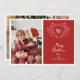 Spread Christmas cheer with this elegant and modern Christmas greeting card featuring a white line art mistletoe design framing a classic crest easily customisable with your initials over a festive red background. Add one of your favourite family portraits to the left side of this holiday card and a second one on the reverse side.