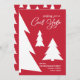 Modern Red White Cool Yule Script Geometric Trees Holiday Card