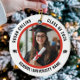 This ornament was inspired by the excitement of graduation day—the moment she steps forward in her cap and gown, diploma in hand, surrounded by cheers and pride. The clean circular frame, striking red border, and modern typography were chosen to highlight her photo, making it the true centerpiece. It’s simple, strong, and timeless—perfect for high school or college graduates who love a classic yet trendy style.