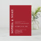 This invitation features a chic red background with a minimalistic design. The names of the couple are highlighted in bold, elegant typography, adding a touch of modern elegance to the invitation. Add your photo on the back.