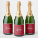 Modern Red White Established Monogram Personalised Sparkling Wine Label