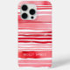 Modern Red White Stripes Geometric Watercolor Pattern Personalised Name iPhone 15 Pro Max Cases features your personalised name, monogram or initals in a simple script typography on a modern red and white watercolor stripe background. Perfect gift for her for birthday, mum for Mother's Day, sister or bestie for Christmas and holidays. Designed by ©Evco Studio www.zazzle.com/store/evcostudio