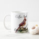 Coffee and Cardinals Modern Mug, Ai Art, Typography. Reds on White. Bird Watchers, Coffee Lovers, Introducing our Stunning Mug featuring a Male Cardinal On one side and A Female Cardinal On the Other Side. Both Birds look Beautiful Perched On Branches, adding a Touch of Nature's Elegance to your Coffee Routine. The Script ''Coffee and Cardinals'', adds a Charming Finish to this Delightful Design. Perfect for Bird Enthusiasts and Coffee Lovers Alike.
