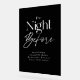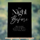 Create an unforgettable first impression with this chic black and white acrylic welcome sign for your rehearsal dinner! Designed on a sleek, glossy acrylic with modern script, it instantly captivates your guests. The bold message, "The Night Before," sets the perfect tone of anticipation and excitement, drawing everyone into the celebration. This sophisticated piece effortlessly combines style and elegance, making the day-before festivities feel extraordinary. Plus, with customisable options for both text and background colours, you can personalise it to perfectly match your event's unique vibe and palette!