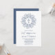 Elegant blue and white first communion invitations feature a cross surrounded by a wreath of leaves and your details in chic lettering. MATCHING items available in our collection.