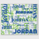 This modern repeating name blue and green font pattern personalised wrapping paper features their name or family name in a repeating word pattern with different trendy fonts on a white background. Your recipient will love to see their name gracing the front of their gifts! Order a roll for each family member's special birthday!