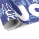 Modern Repeating Name Blue White Font Pattern Wrapping Paper