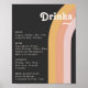 Modern Retro 70's Rainbow Dark Wedding Drinks Menu Poster