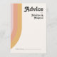 This modern retro 70's rainbow wedding advice card is perfect for your simple vintage orange, rose gold, and blush pink wedding. Designed with elements of a classic, colourful boho arch and groovy minimalist stripes. The design has a unique abstract tropical beach feel, great for any spring, summer, or fall wedding. The product is customisable, as the graphic is an SVG file, so feel free to change all the colours! Add your own artwork, photos, or graphics. If you have any questions about the design of this product, please feel free to reach out to us!