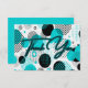 This cool thank you card features an abstract retro pattern from the 80s-90s with geometric circles, lines, and dots in a colour palette of sea green and black set against a white backdrop.