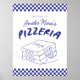 Modern Retro Blue Italian Pizzeria Pizza Party Poster