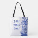 Modern Retro Blue Lotus Mandala Good Vibes Tote Bag
