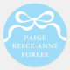 Modern Retro Boy Blue Bow Baby Birth Announcement Classic Round Sticker