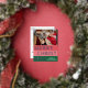 Unique, trendy and simple chic seasonal Christmas Holiday greetings card featuring your favourite winter photograph and real gold foil MERRY CHRISTMAS text on a coral red, blush pink and forest green coloured bold stripes pattern. With room to customise or personalise with a photo and family name or names of your choice on the front, and a customisable season greeting poem on the backside of the card, including your return address, city, zipcode and state.