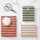Modern Retro Cream Red Green Stripes Kraft Wrapping Paper Sheet