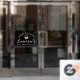 Custom-designed window decal and cling featuring modern retro style bakery and cafe logo design.