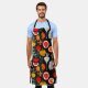 Modern Retro Fruit and Veg on Black Pattern Apron
