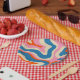 Modern Retro Liquid Swirl Colorful Abstract Pattern Square Pink Blue Red Orange Beige. Contemporary pop 60s 90s Y2K boho aesthetic; a little bit trippy and psychedelic. By Kierkegaard Design Studio.