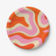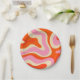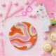 Modern Retro Liquid Swirl Abstract Pattern Pink Paper Plate