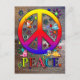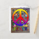 Modern Retro Peace Sign Text Birds & Flowers II Postcard