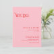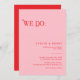 This modern retro pink and red we do wedding invitation features a bold and stylish layout. The soft pink background is paired with rich red typography to create a clean retro modern look. The large “We Do” headline adds a confident and contemporary feel while keeping the design elegant and simple.