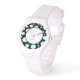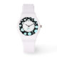 Personalise this modern fun and funky retro style polka-dots watch with a Name or your own text within the circular border of turquoise blue and white gradient circles on black.