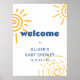 Welcome Sign for celabrate sun baby shower theme, feature boho ray of sunshine, sun, with stylish and cute typography in yellow and blue colour schemes. perfect for summer baby shower. gender neutral for baby boy and baby girl baby shower party.