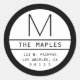 Modern Return Address & Monogram | Gradient Black Classic Round Sticker