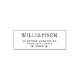 Cute return address rubber stamp featuring the surname/family name in a cute, modern font and the address below in and elegant sans-serif font