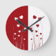 Modern Romantic Red White Love Hearts Round Clock