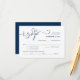 This is the beautiful Modern Romantic RSVP (Respond) Enclosure Card, in Navy Blue font, where you can edit, change colour and format it as per your design requirement, with meal options, reserved seats, number attending and song request option.
