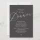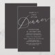 Mark the beginning of your forever with elegance using our romantic contemporary theme wedding reception elopement dinner celebration invitation card, "Happily ever after dinner". Perfect for couples extending their joyous occasion, this invitation exudes sophistication with a hint of playfulness, setting the stage for a memorable event. Adorned with a timeless modern script design, with white text on charcoal grey background, it adds a touch of refined charm to your festivities. Crafted by TeeshaDerrick, this invitation promises to beautifully capture your love story.