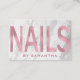 Modern and trendy rose gold nails business card. Design features of ' Nails ' in rose gold color on white marble background.