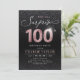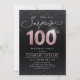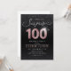 Modern Shhh, it's a surprise 100th birthday party invitation features stylish script and faux rose gold glitter number 100 and your party details on black glitter background colour, simple and elegant, great surprise adult milestone birthday invitation for men and women.