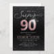 Modern Shhh, it's a surprise 90th birthday party invitation features stylish script and faux rose gold glitter number 90 and your party details on black glitter background colour, simple and elegant, great surprise adult milestone birthday invitation for men and women.