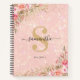 Elegant monogram sketchbook/notebook featuring pink sparkle effect background, girly watercolor florals, faux gold glitter, your name, initial, and the volume.